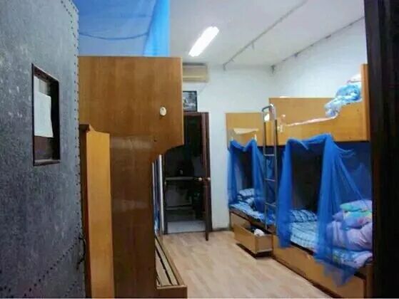 8人一宿舍,一人一个柜子装生活用品,有空调,两个宿舍合用一个卫生间,3个洗漱池,食堂都是大锅饭,好吃谈不上,但重在干净、卫生。