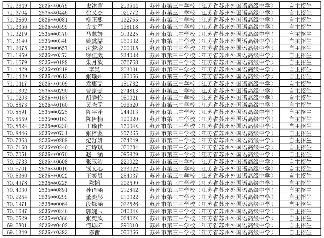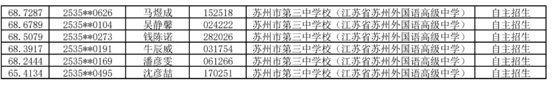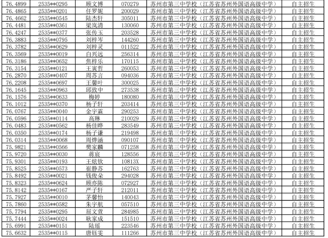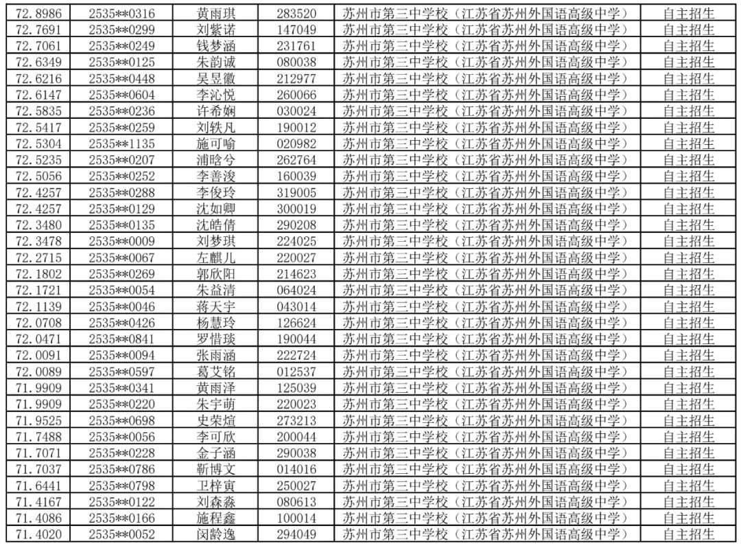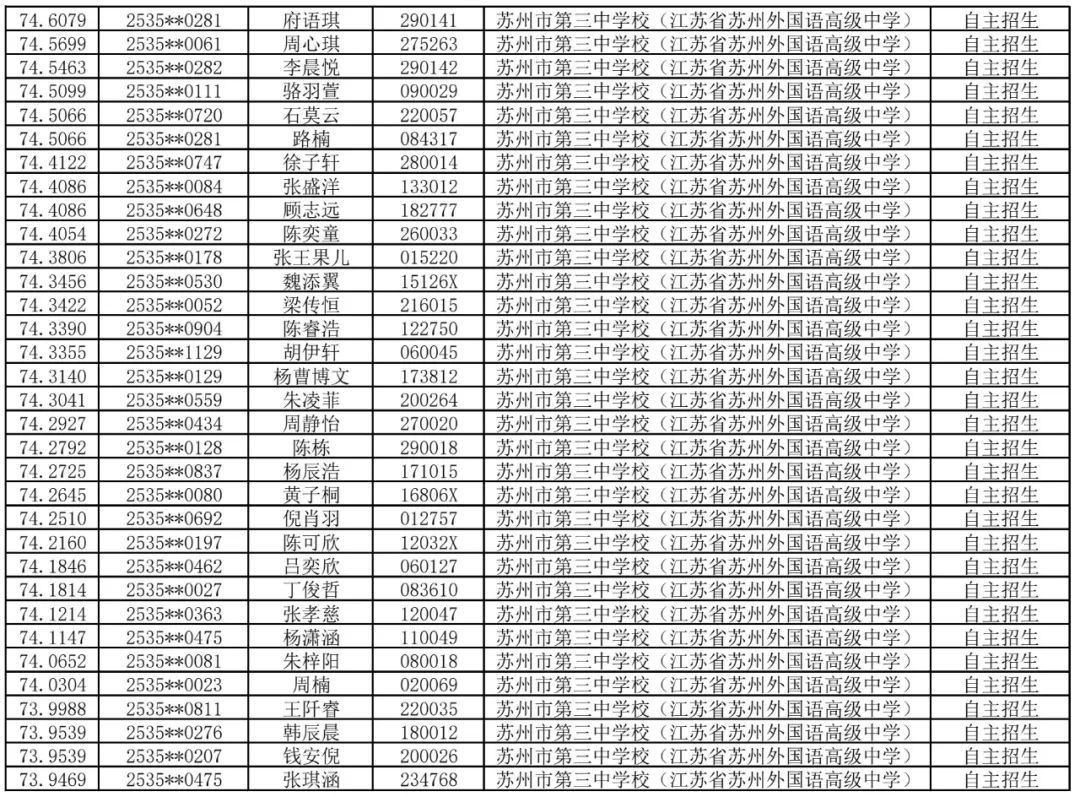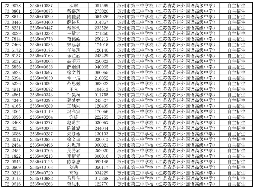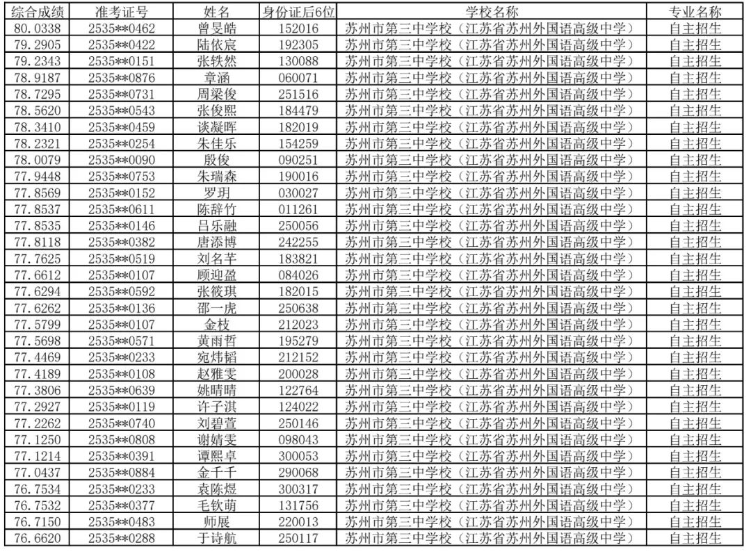 - 9苏州市第三中学校2023年“慧成实验班”自主招生 综合成绩公示