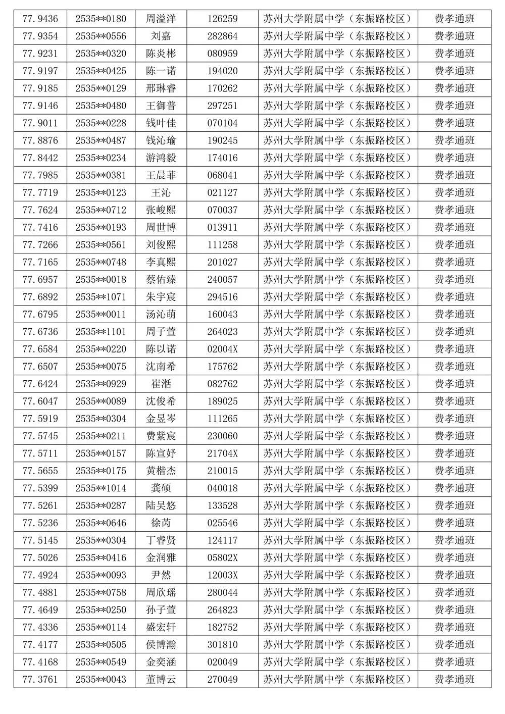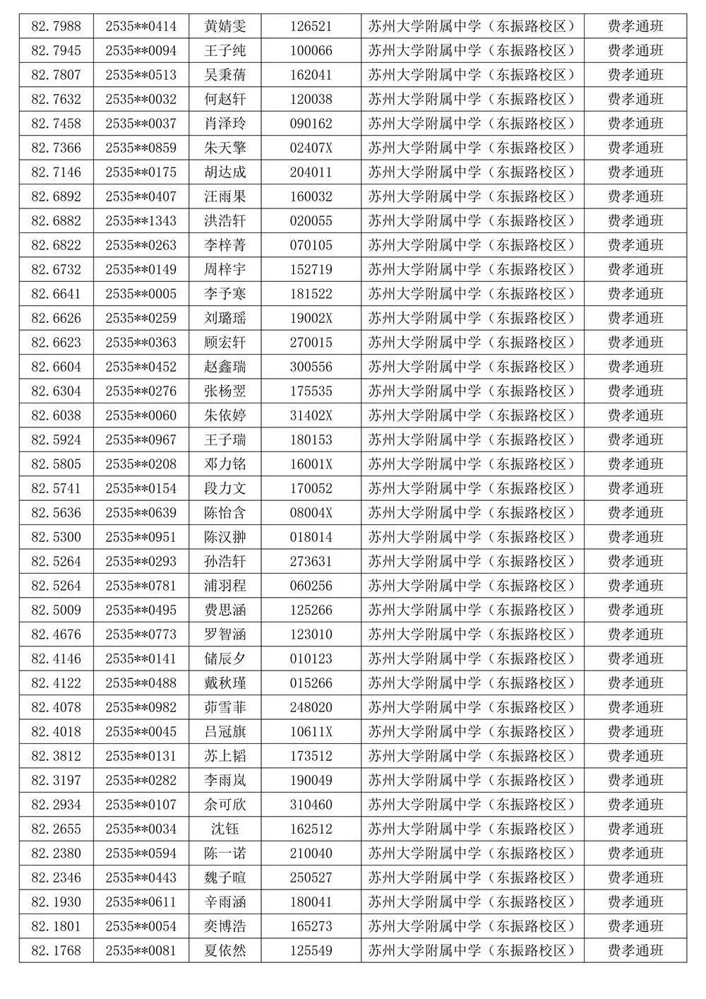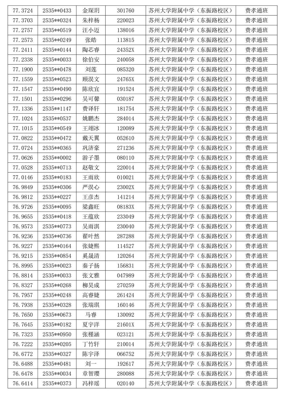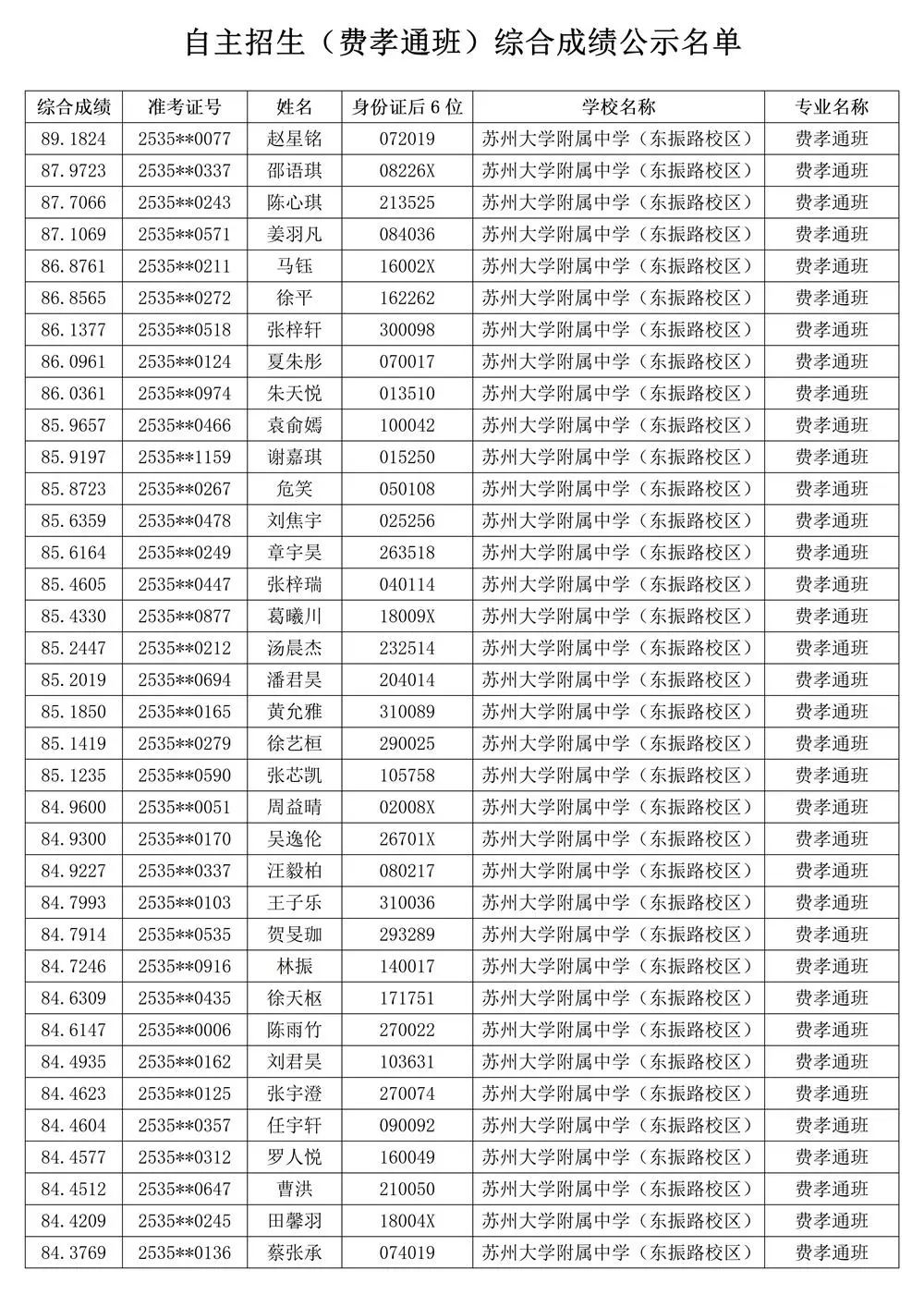 - 4自主招生--7.1成绩公示名单//2024年苏大附中费孝通班综合成绩公示