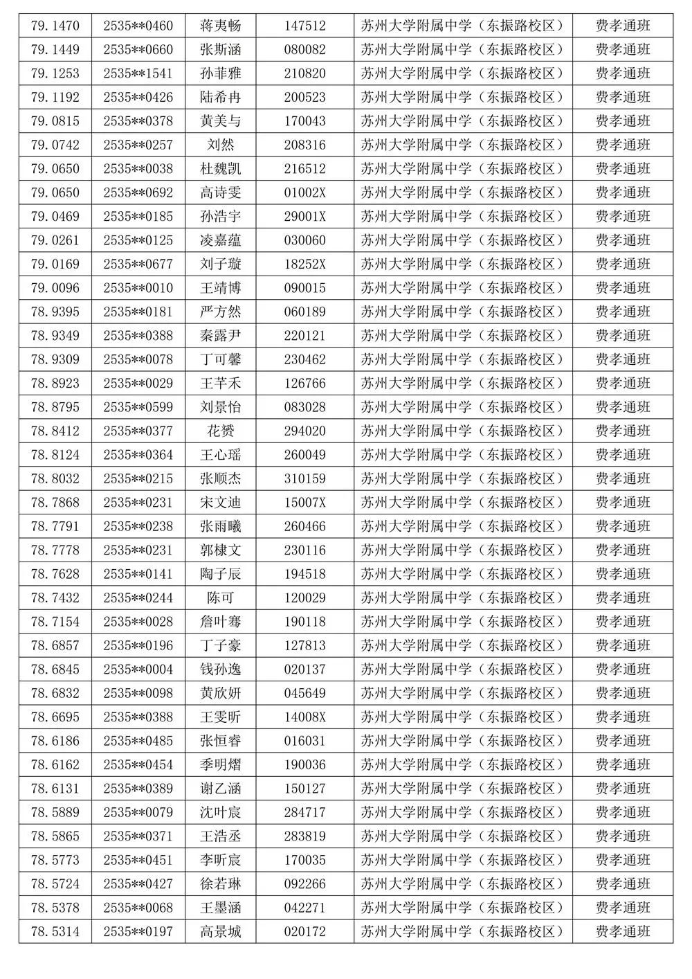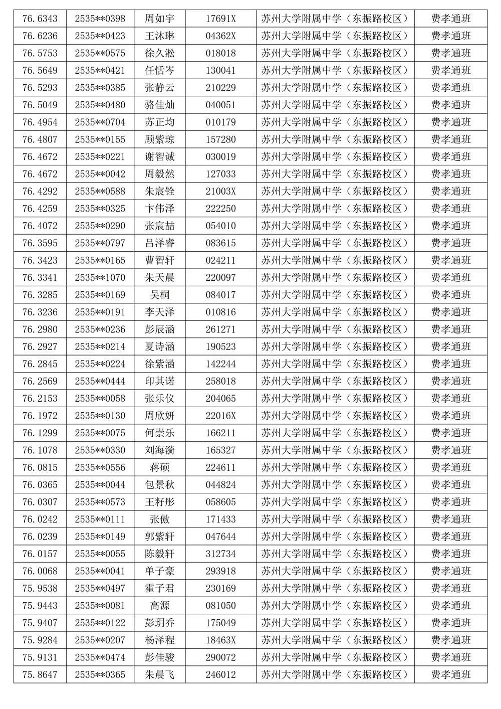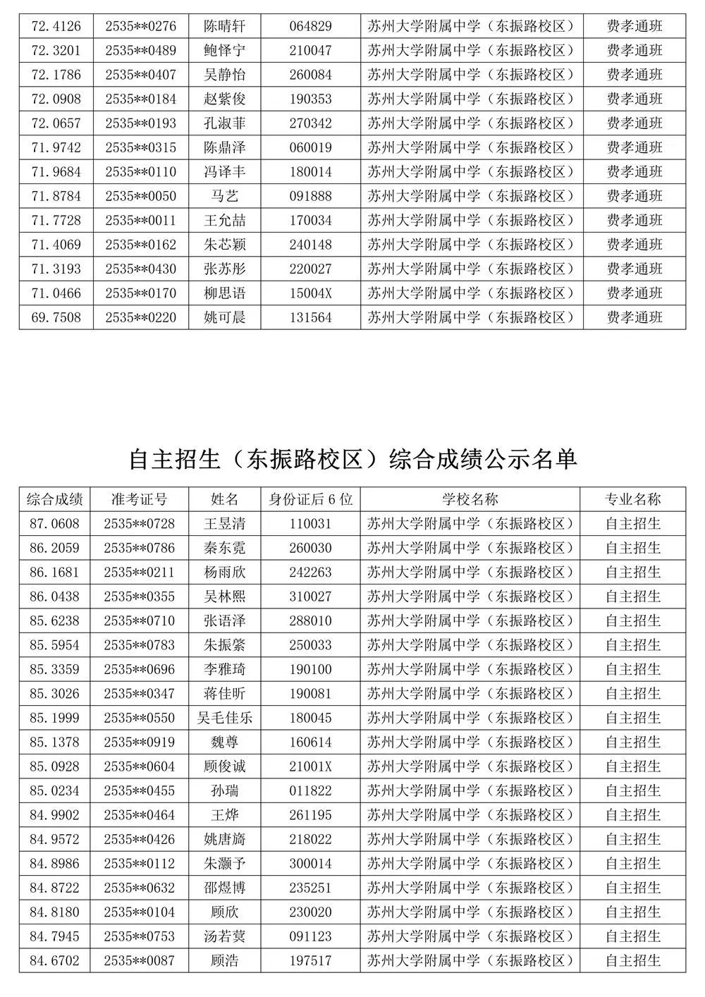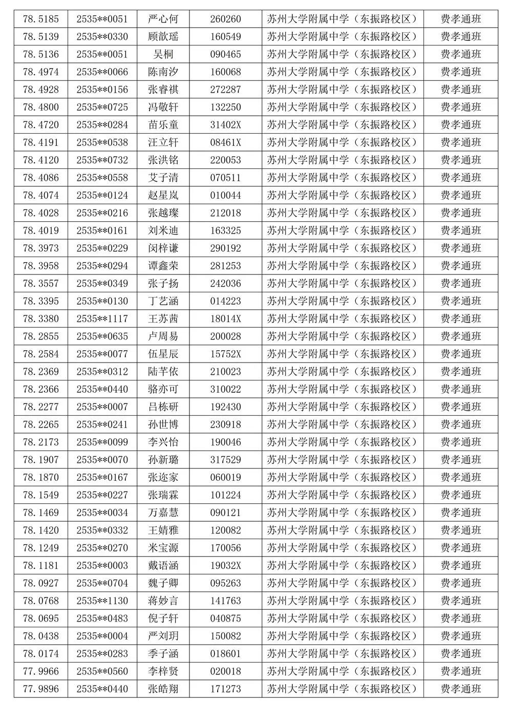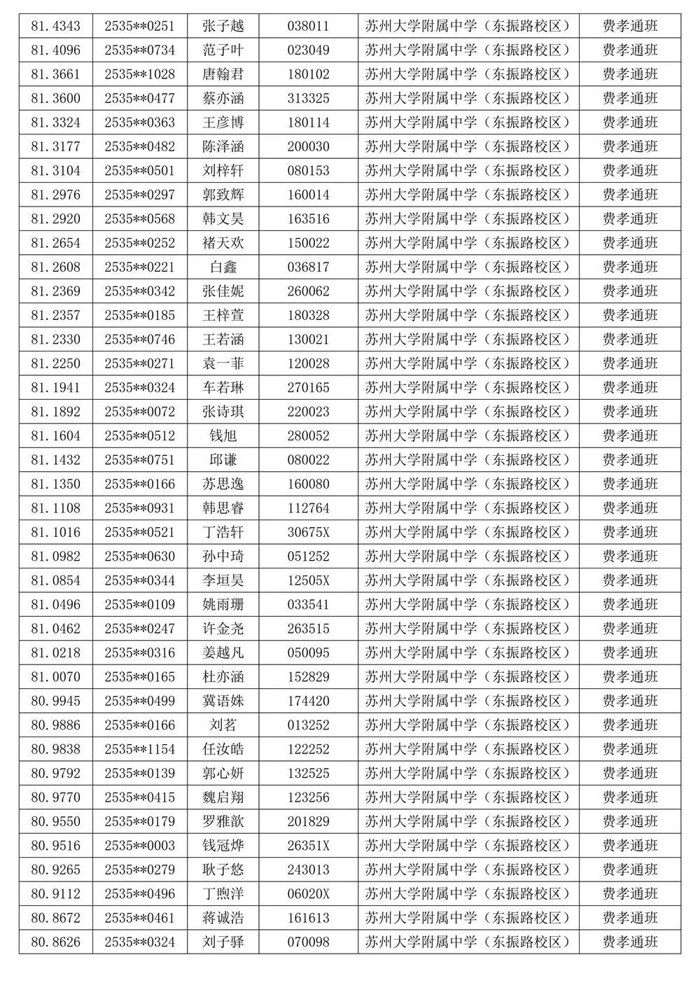 - 4自主招生--7.1成绩公示名单//2024年苏大附中费孝通班综合成绩公示