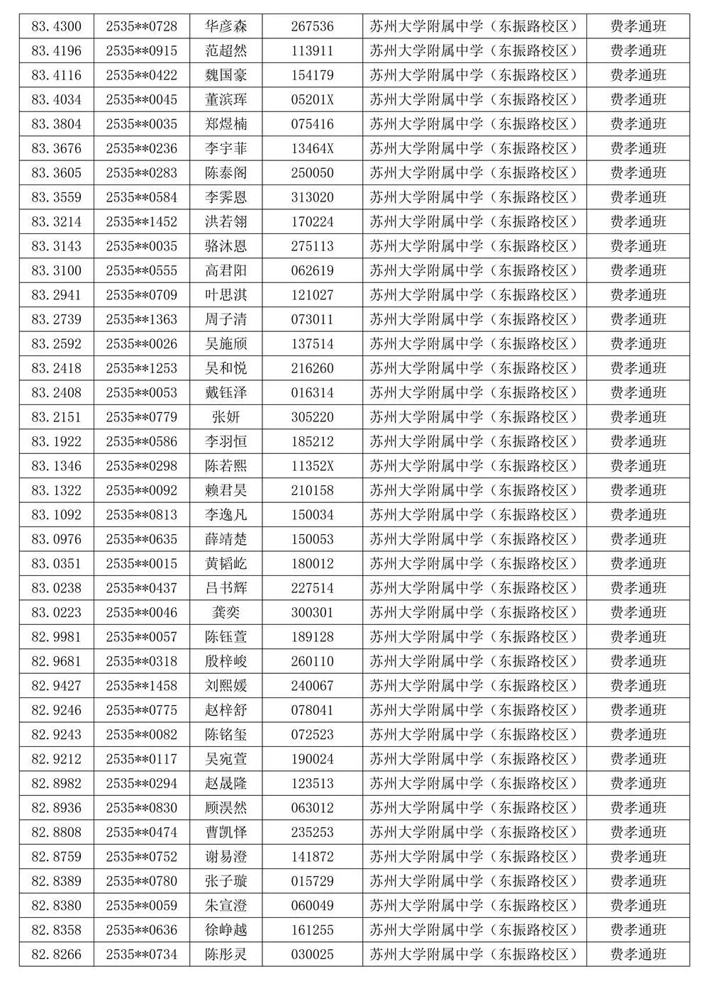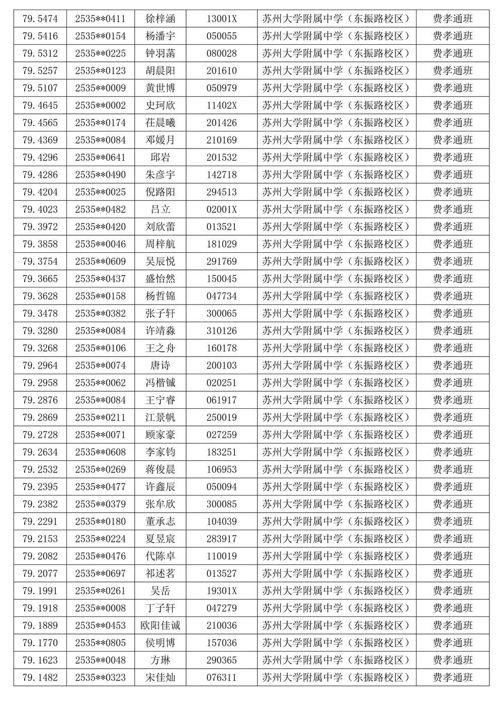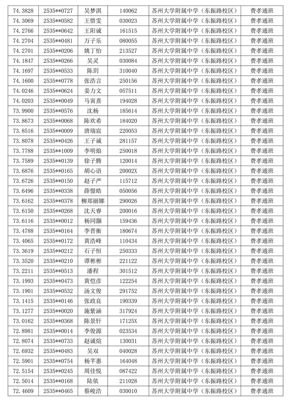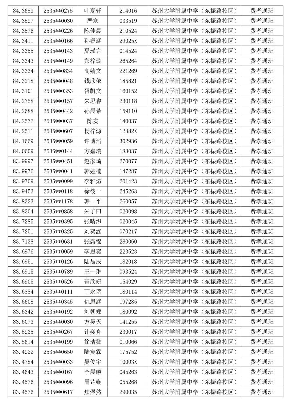 - 4自主招生--7.1成绩公示名单//2024年苏大附中费孝通班综合成绩公示