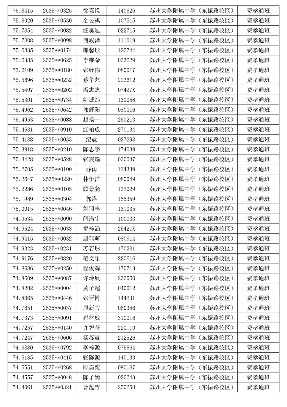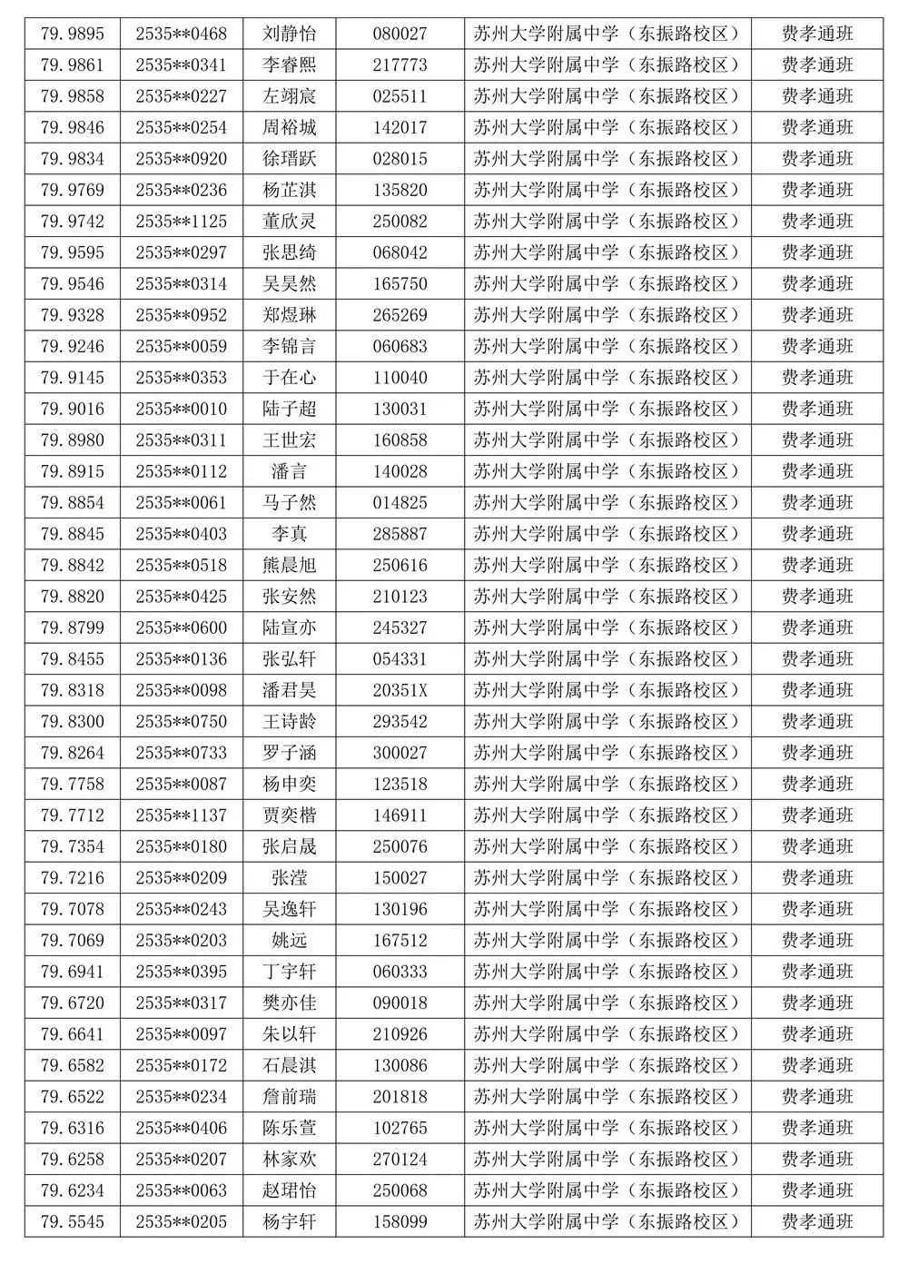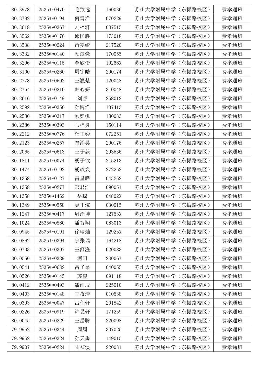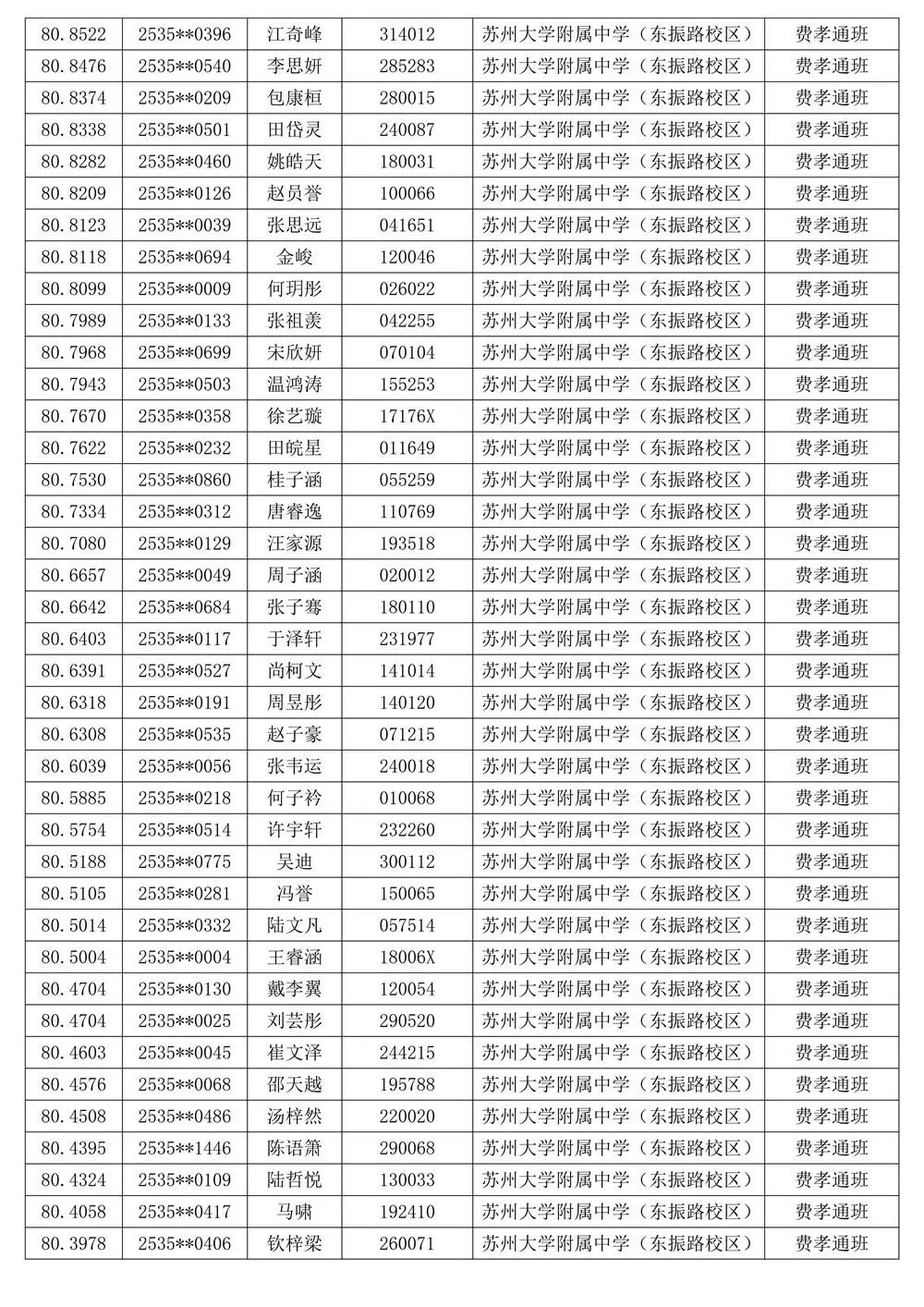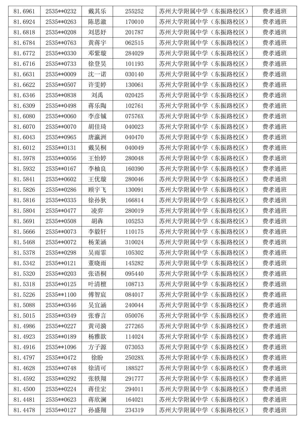 - 4自主招生--7.1成绩公示名单//2024年苏大附中费孝通班综合成绩公示