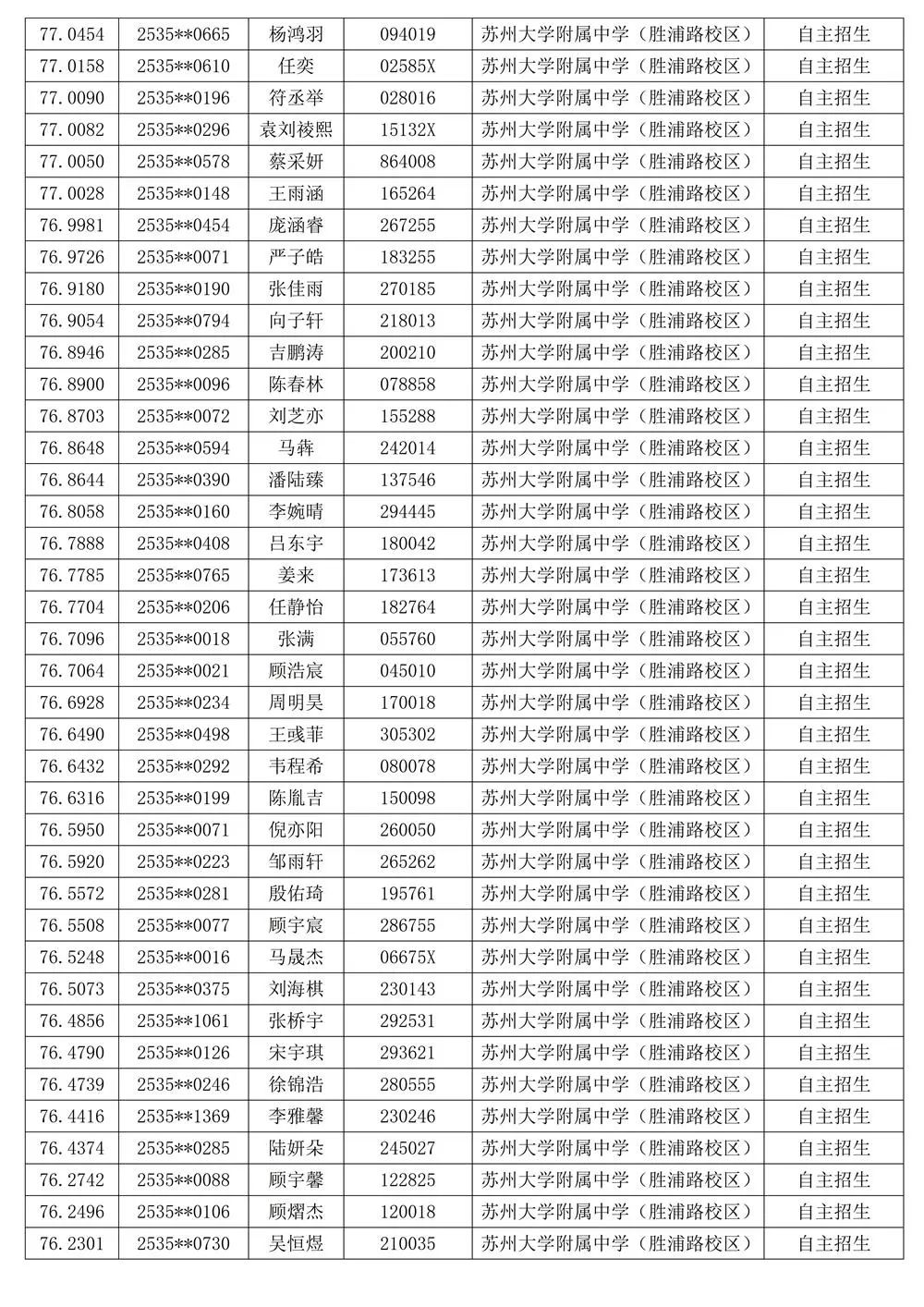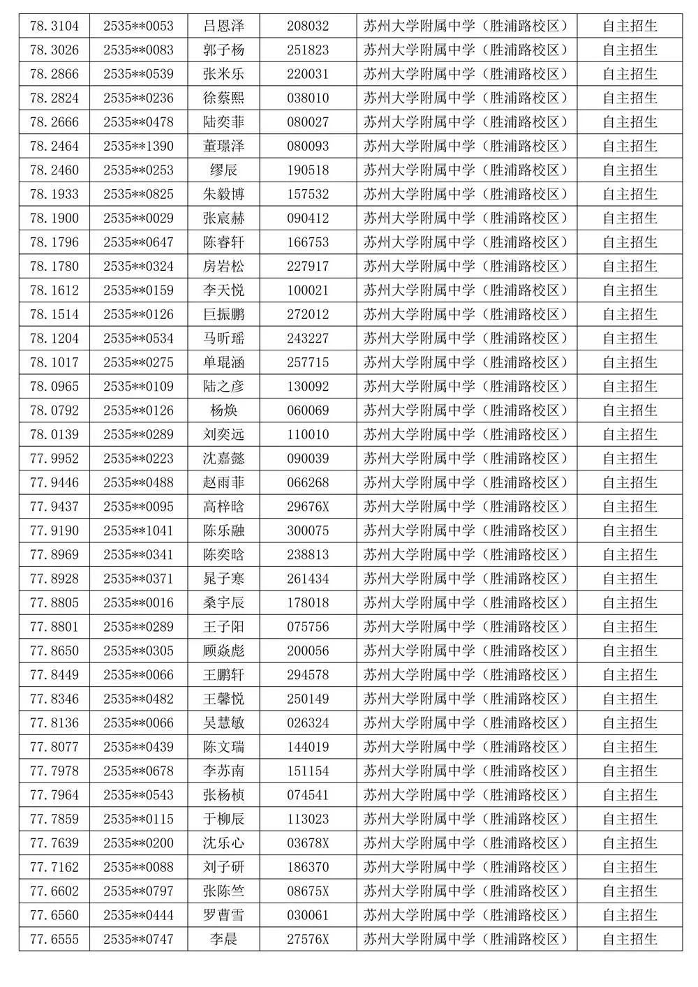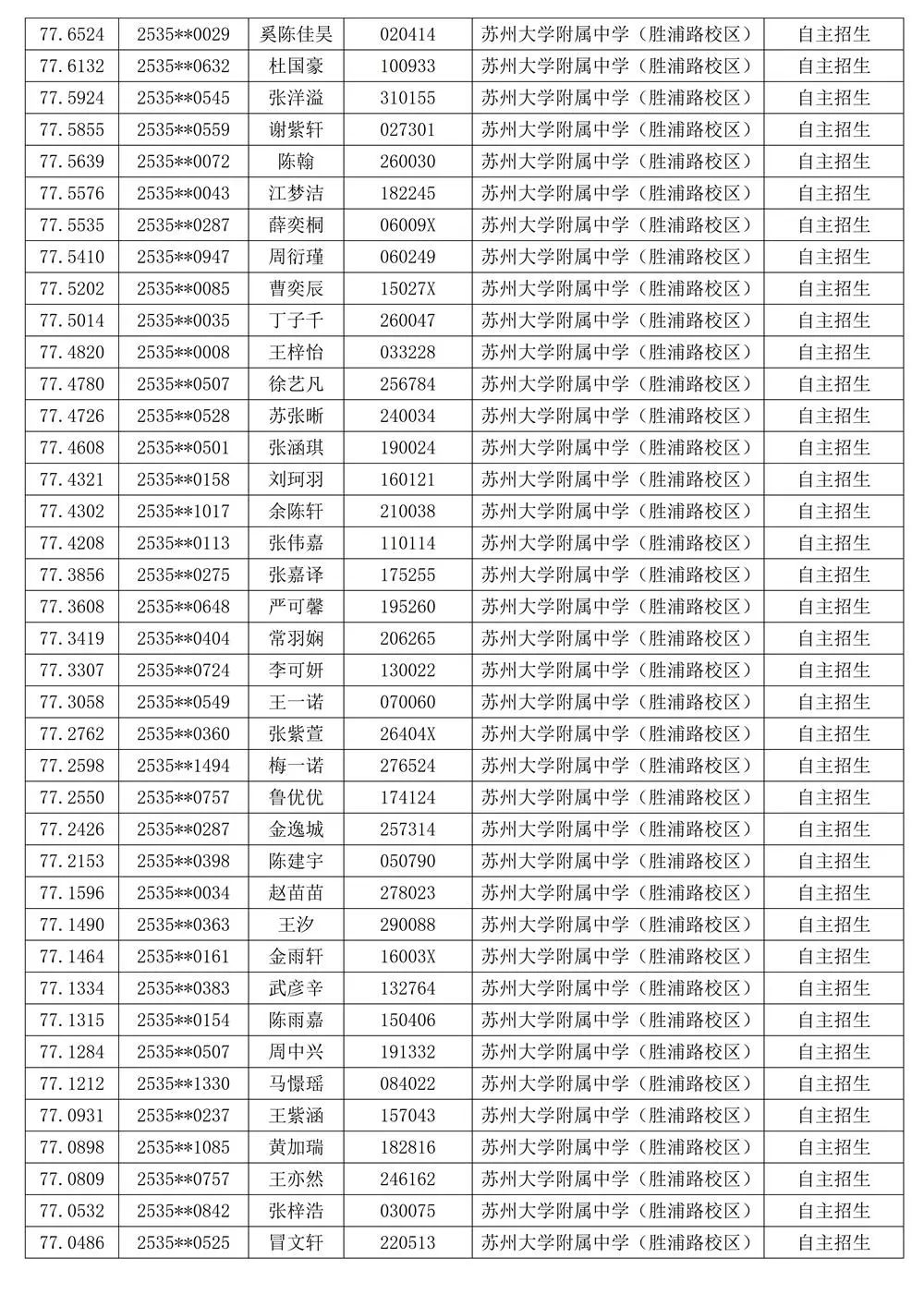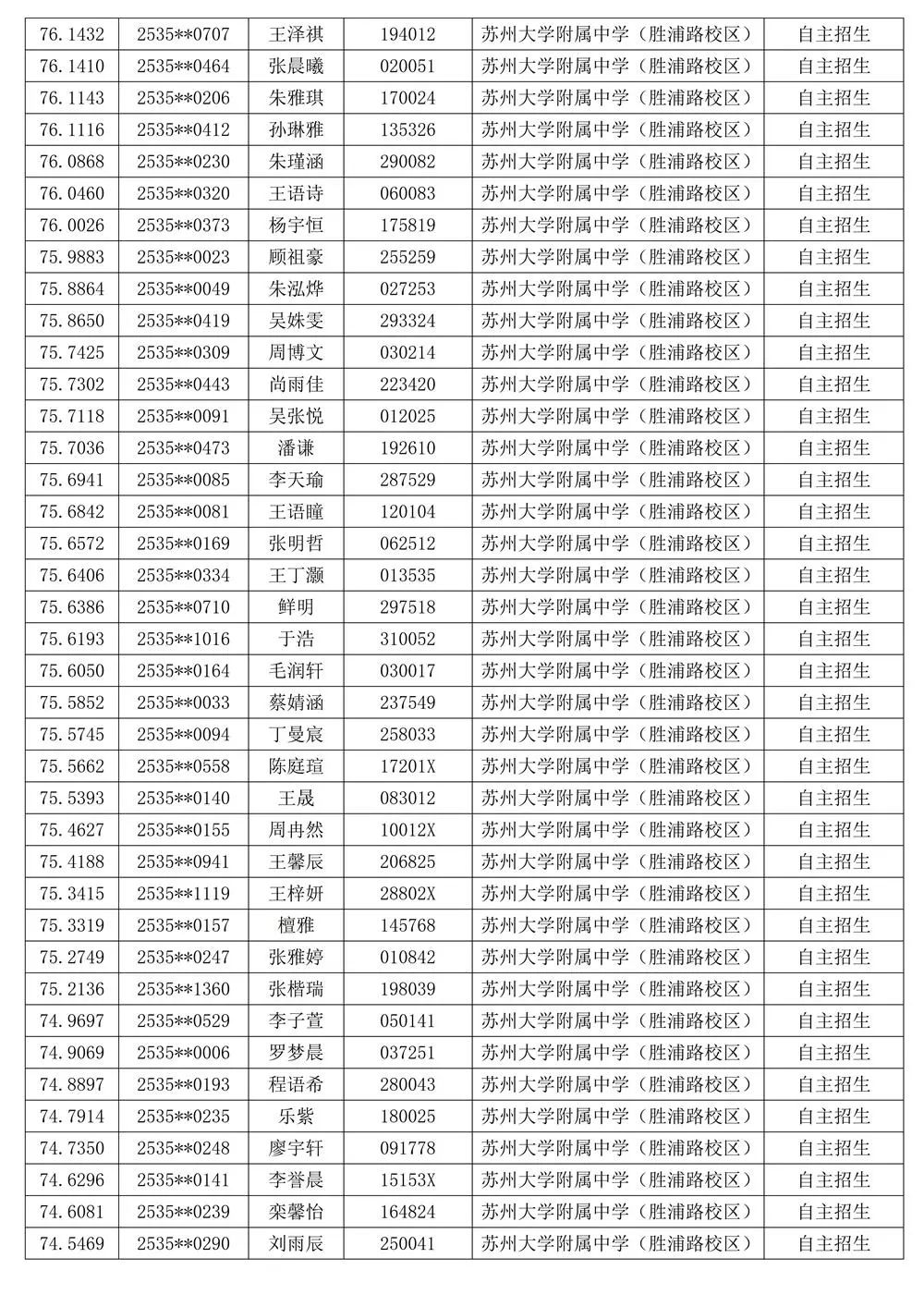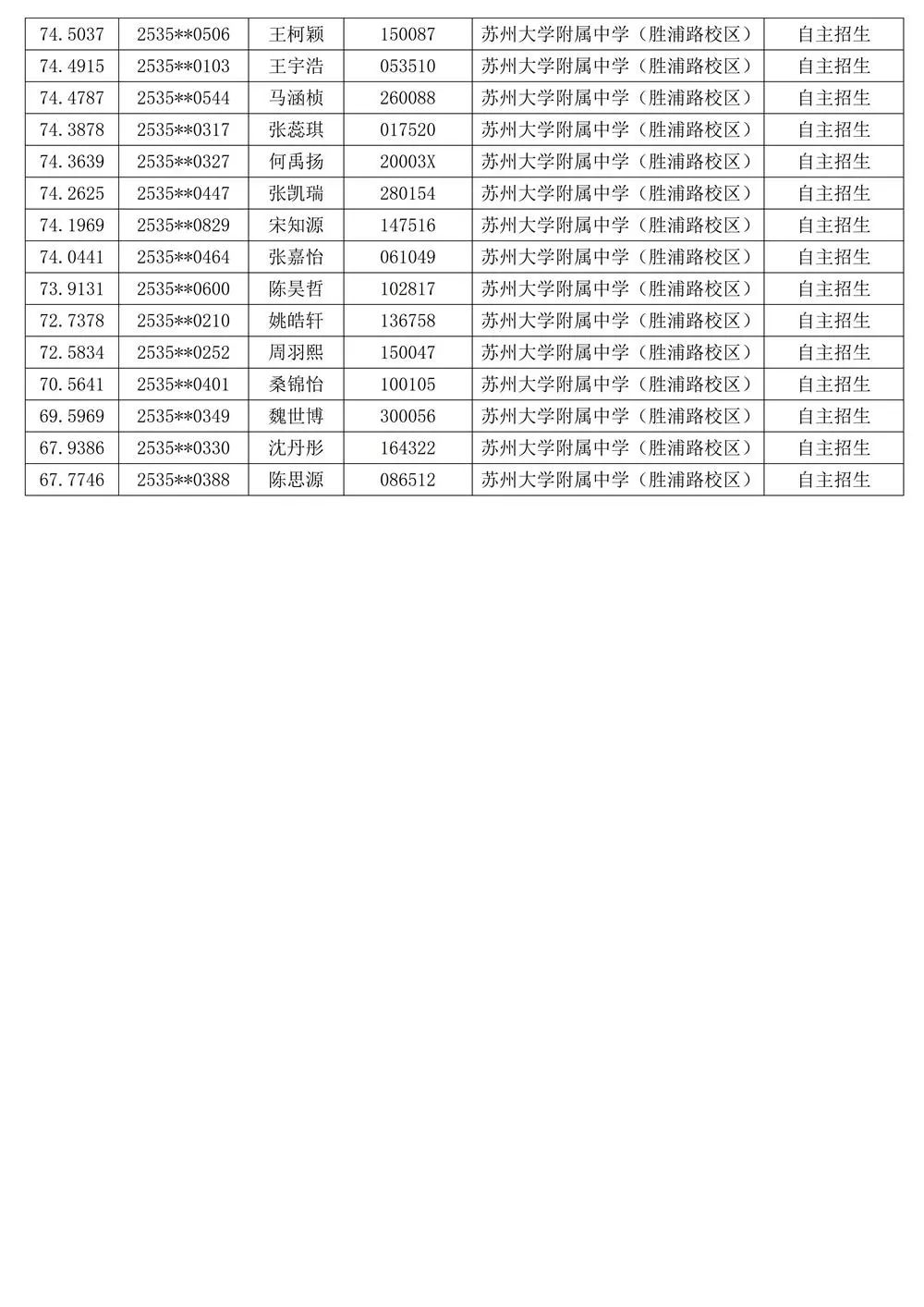 - 5自主招生--7.1成绩公示名单//2024年苏大附中自主招生综合成绩公示