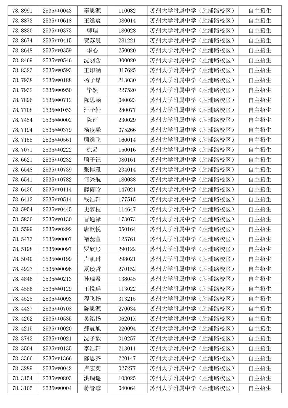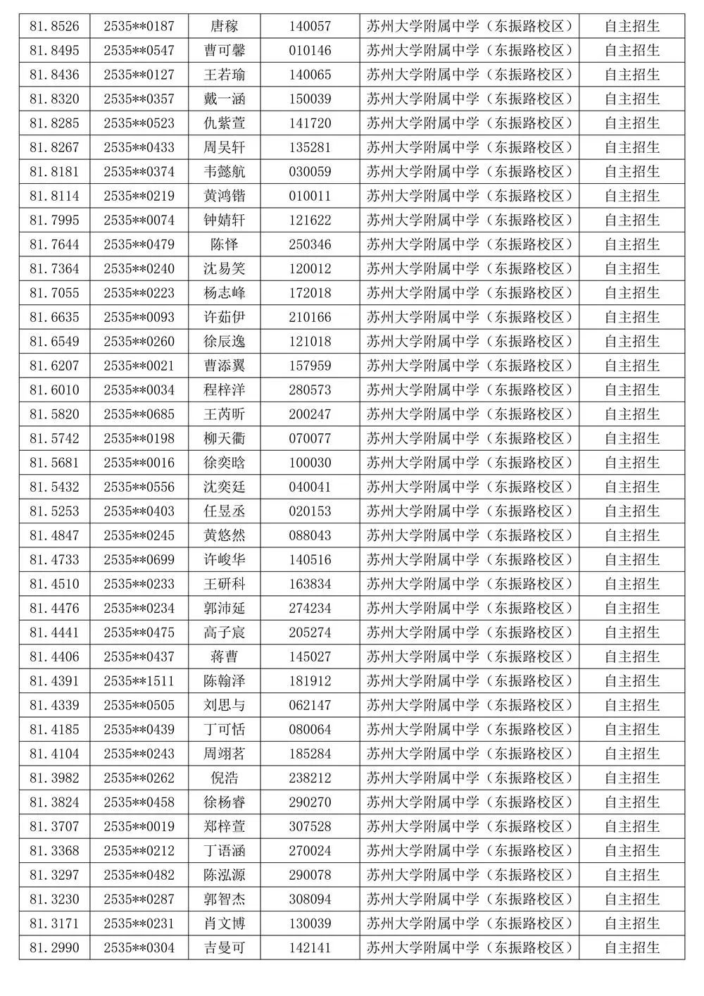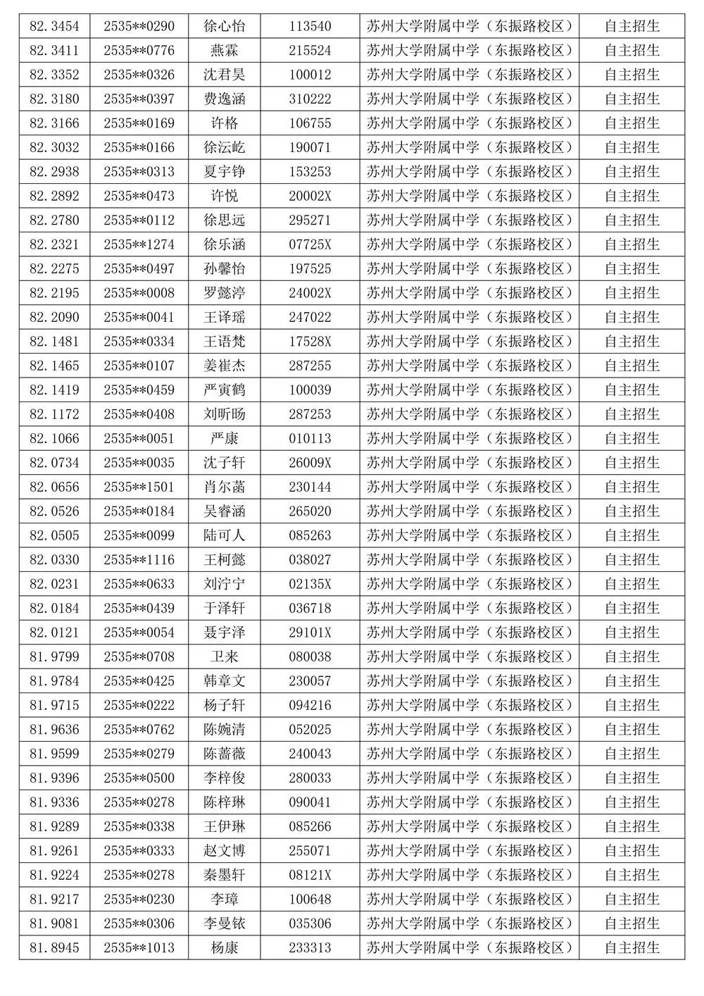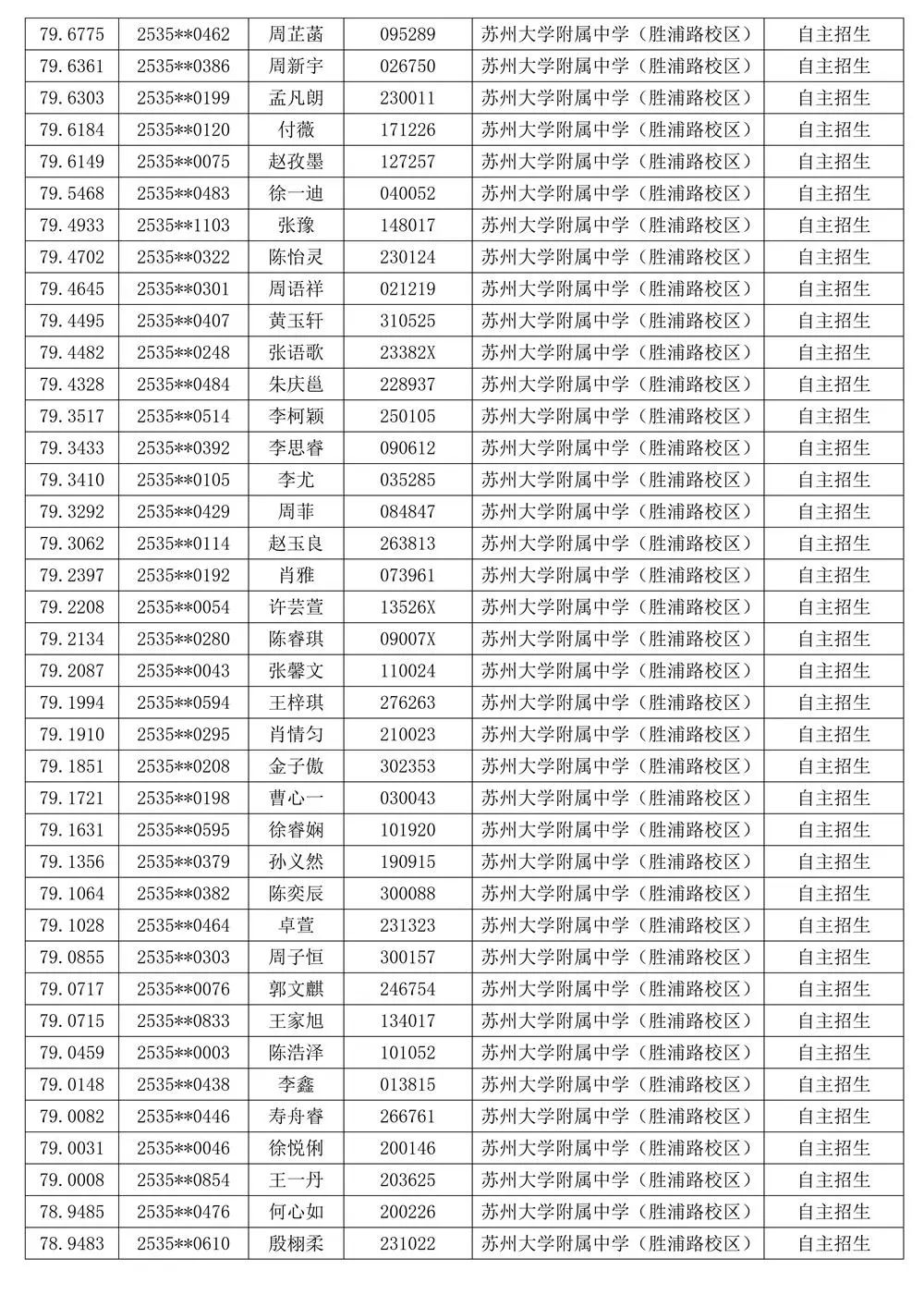 - 5自主招生--7.1成绩公示名单//2024年苏大附中自主招生综合成绩公示