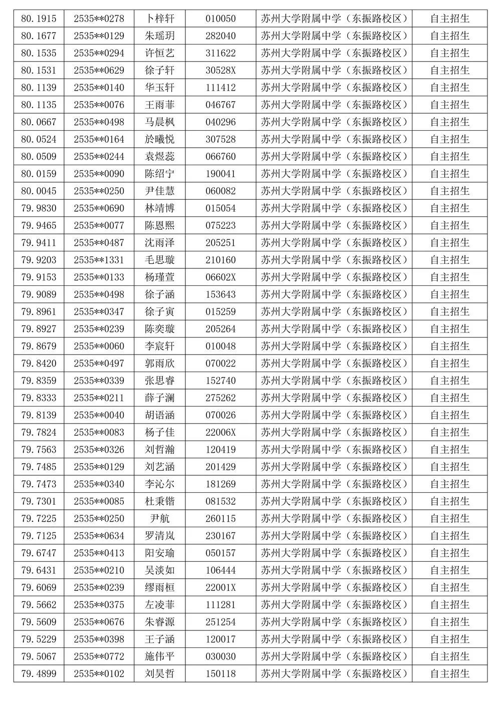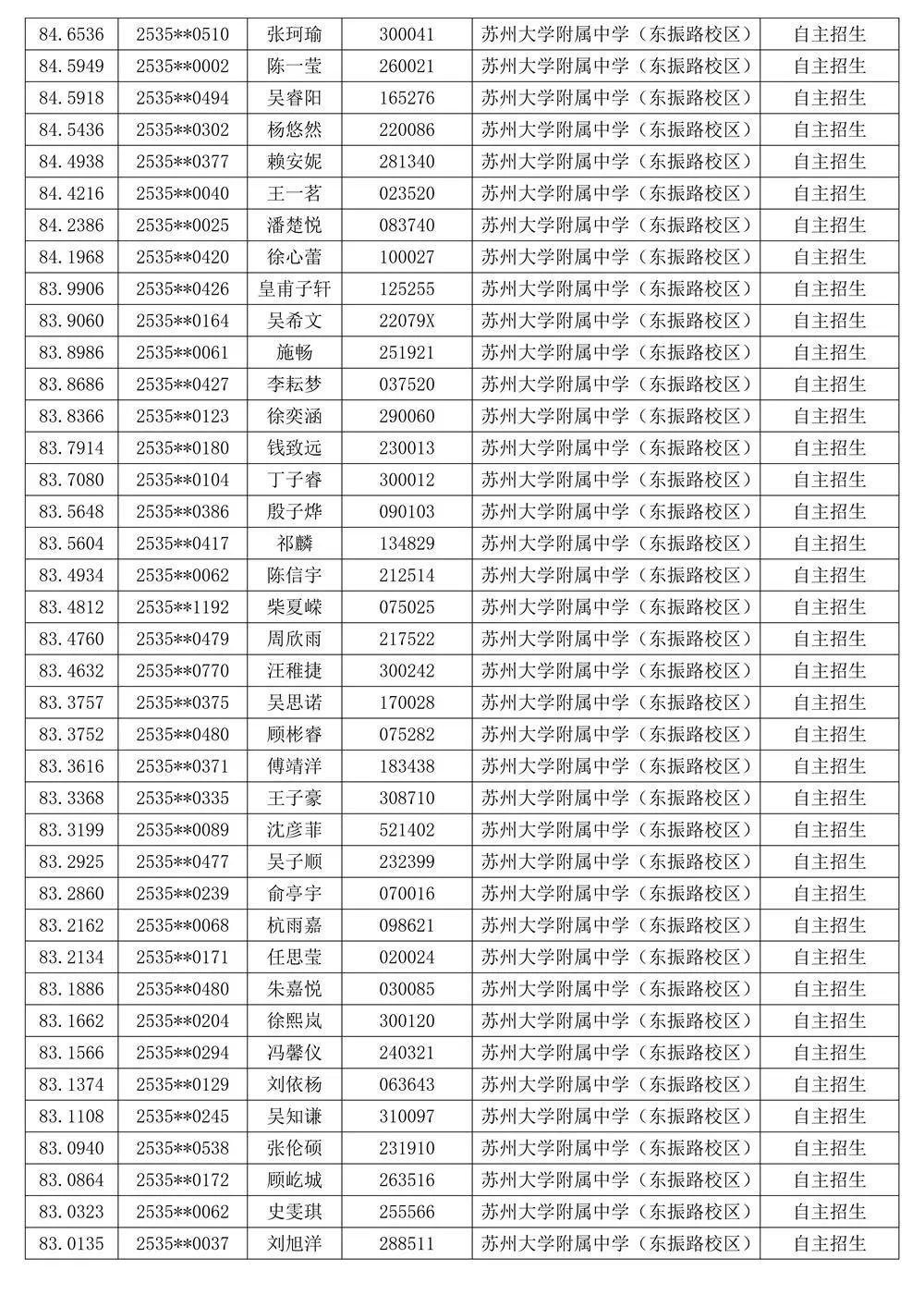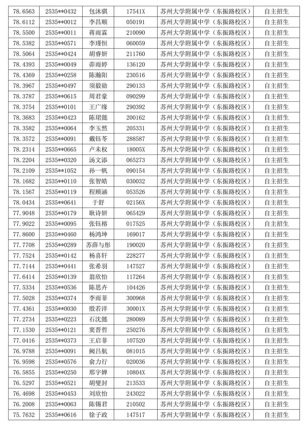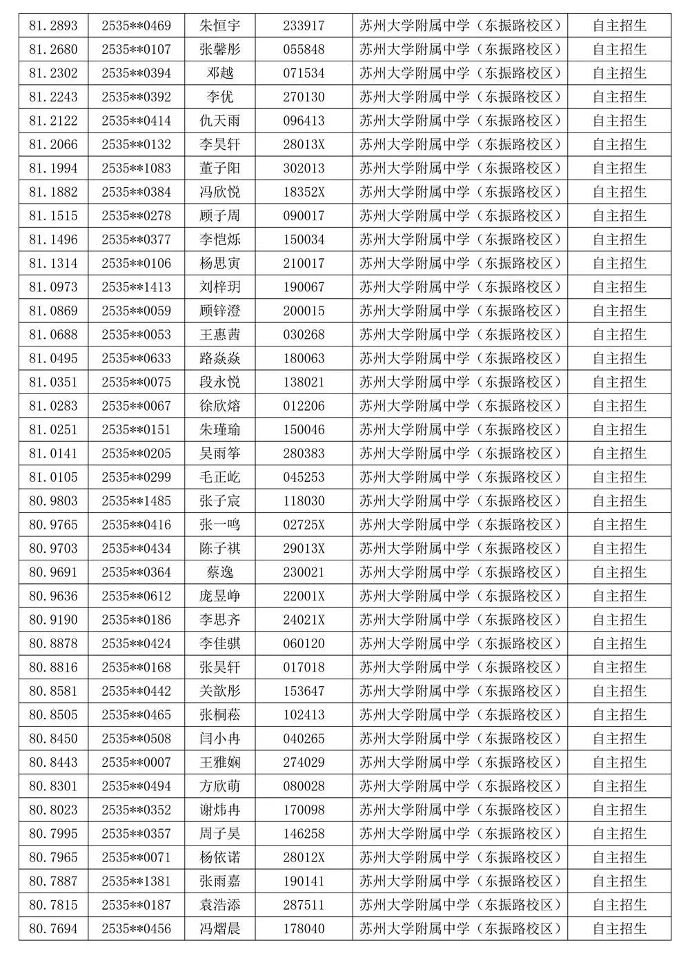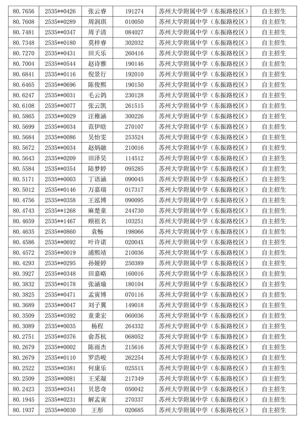- 5自主招生--7.1成绩公示名单//2024年苏大附中自主招生综合成绩公示
