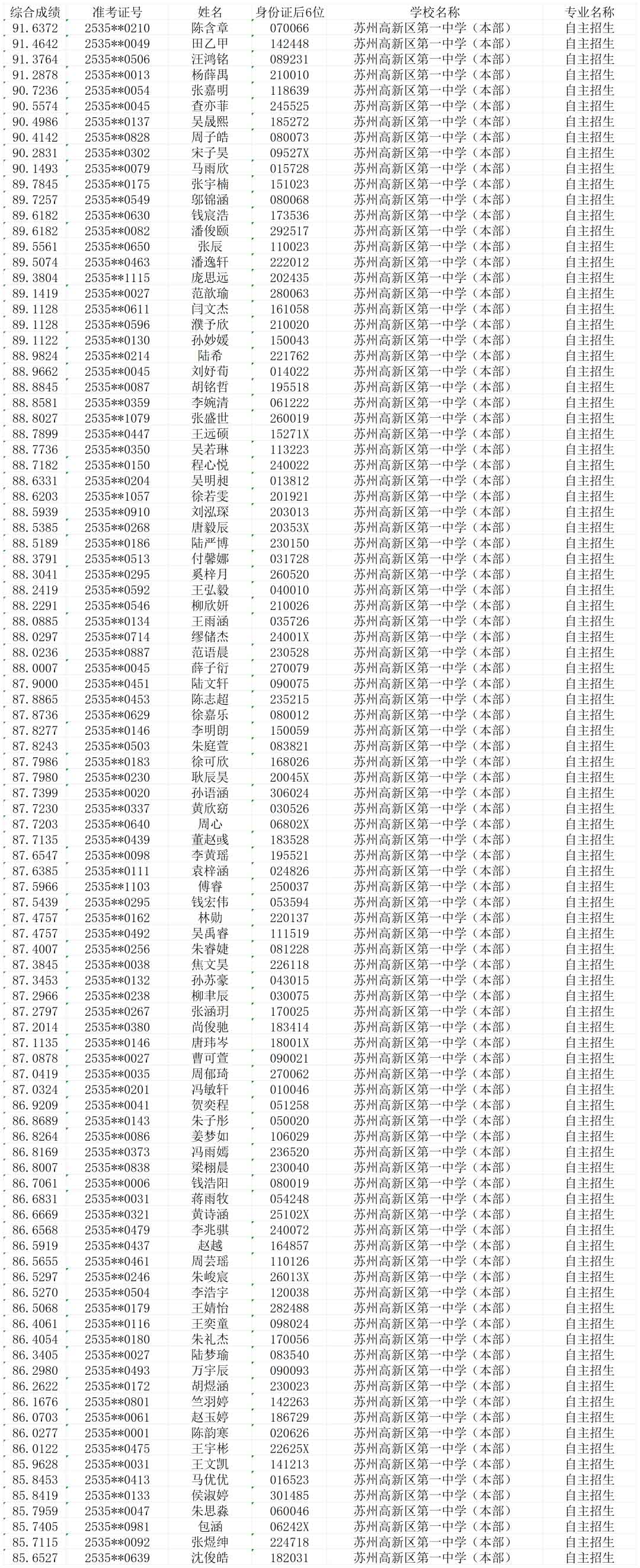 - 4自主招生--7.1成绩公示名单//2024年苏州高新区第一中学(本部)自主招生综合成绩公示