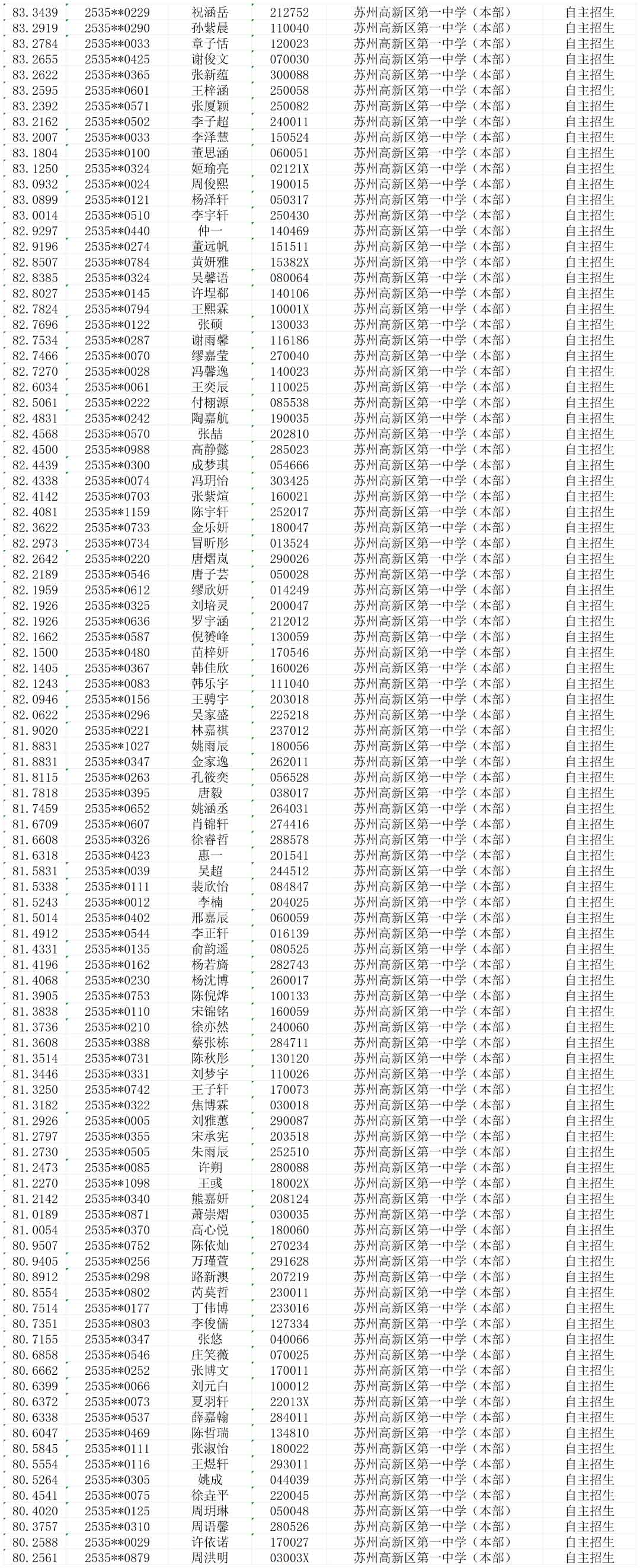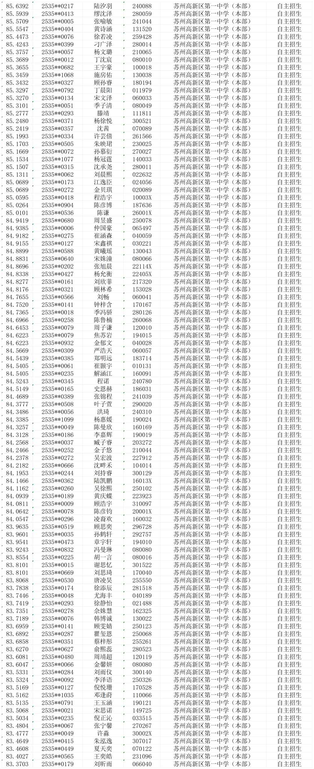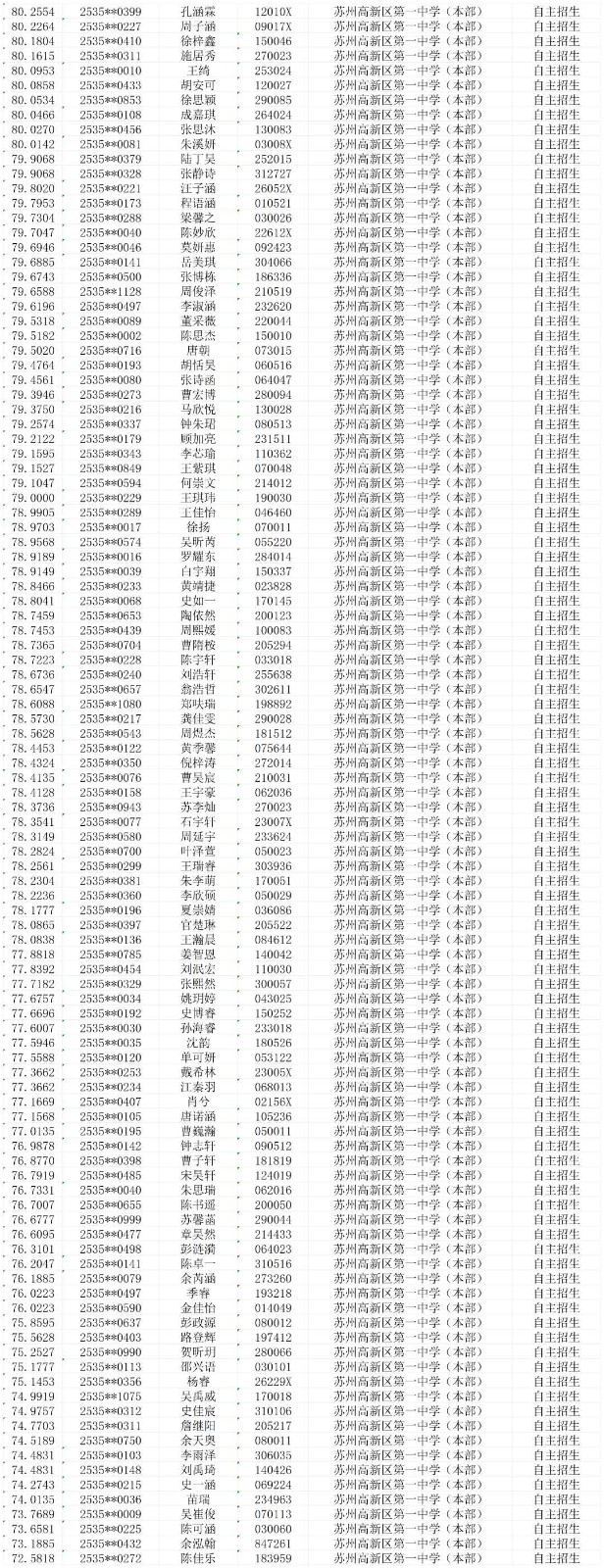 - 9苏州高新区第一中学(本部)2023年自主招生综合成绩公示