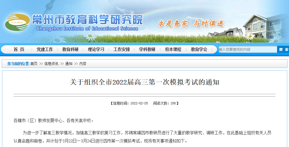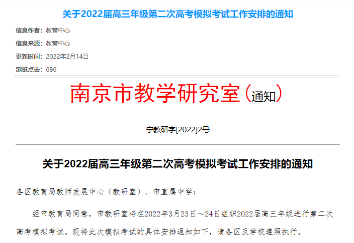 苏锡常镇四市将组织2022届高三第一次模拟考试,具体时间安排如下: