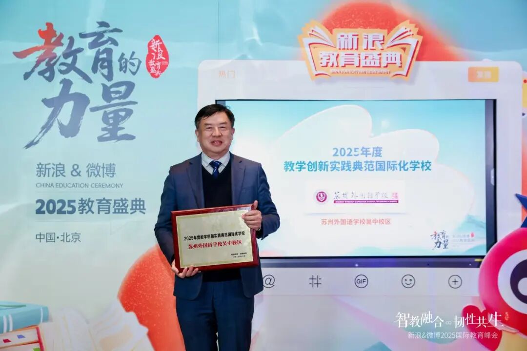 苏州外国语学校吴中校区副校长陈余根受邀参会,与各地教育同行共绘“智教融合”蓝图,并代表学校荣获“2025年度教学创新实践典范国际化学校”称号。