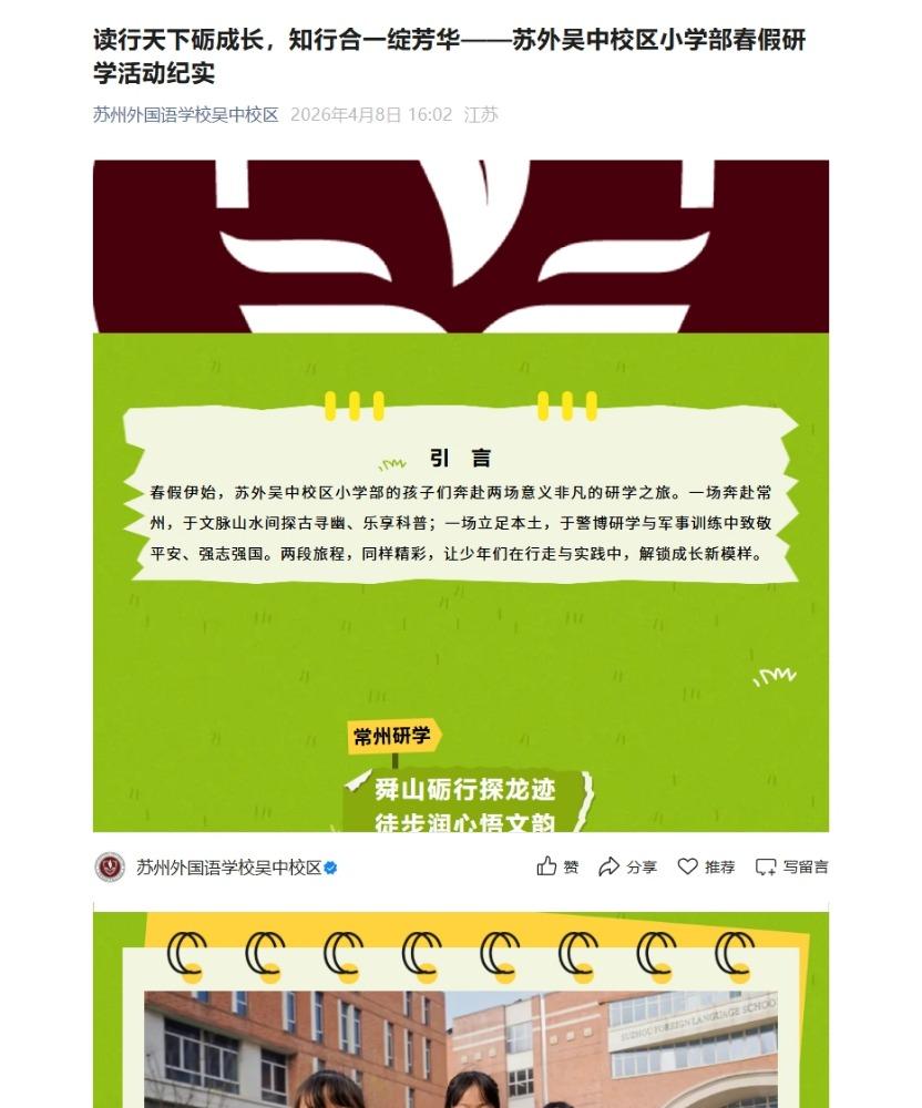 读行天下砺成长,知行合一绽芳华——苏外吴中校区小学部春假研学活动纪实