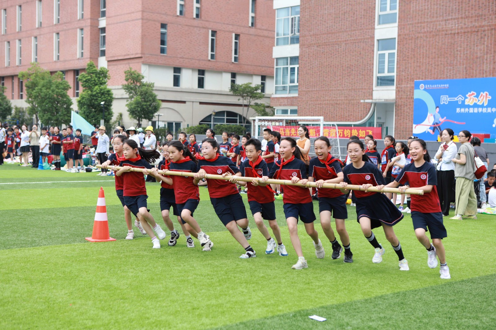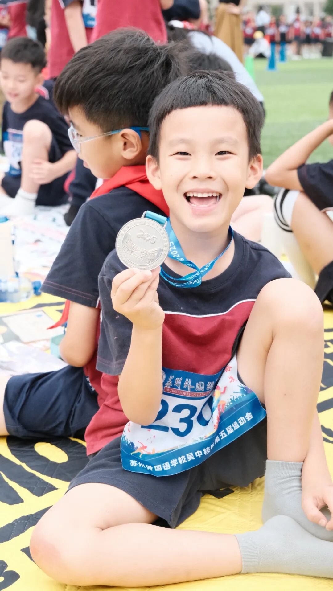 在苏外吴中小学部,运动的核心词是“快乐”与“全员”。当运动会的名额有限让一些孩子撅起小嘴时,老师们一句“别急,还有袋鼠跳和障碍赛跑,全班一起上!”瞬间点亮了所有孩子的眼睛。练习时互相搀扶,比赛时拼命加油,当班级夺得双料冠军时,孩子们欢呼雀跃——他们收获的不仅是胜利,更是“二十六颗心紧紧连在一起”的集体认同感。