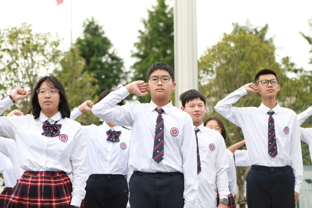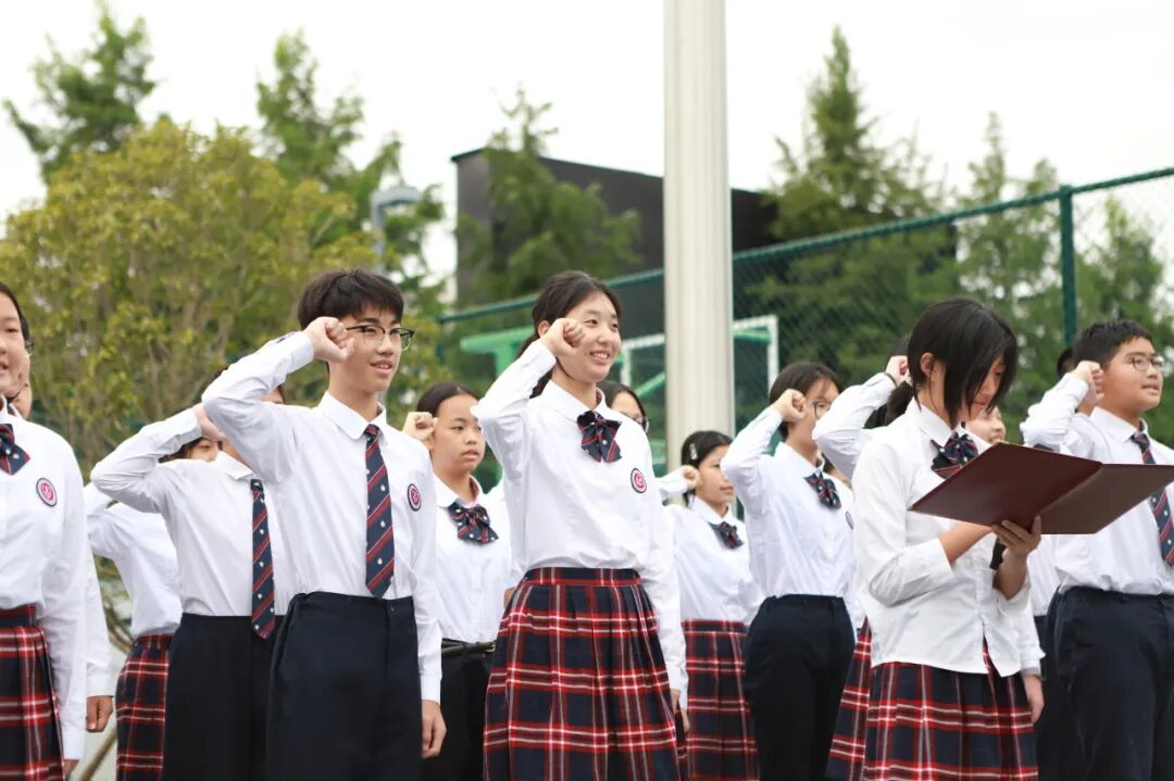 8:45,国歌毕。22名少年转身面向全体师生,右拳紧握,誓词铿锵: