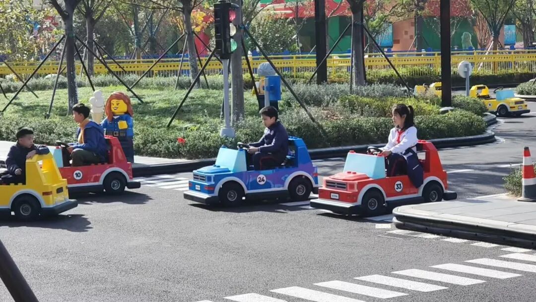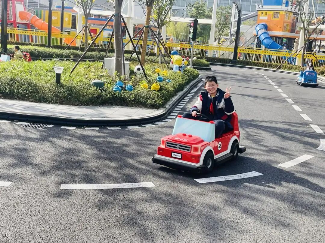 在乐高乐园的“驾驶学校”里,孩子们驾着迷你小车,将“红灯停、绿灯行”的规则付诸实践,让交规知识变得鲜活起来;悟空小侠主题区的龙形设施上,此起彼伏的“WOO-HOO”是快乐最直接表达;蓝色的乐高游船划过水面,船舷溅起的水花里,藏着组队协作的默契。