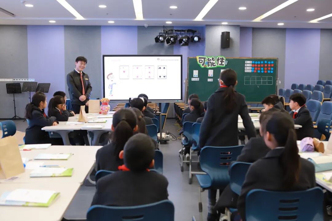 随后葛强老师的《可能性及可能性大小》课堂则巧妙融入实验元素,让学生在摸球、摸牌、换牌、抛硬币、放球等一系列活动中感受随机现象,充分体现了“发现-表现”式课堂特色,展现了中年级数学思维进阶的教学智慧。两节课均紧扣“AI赋能”与“跨学科融合”主题,将技术辅助与学科本质有机结合,让核心素养在课堂中落地生根。